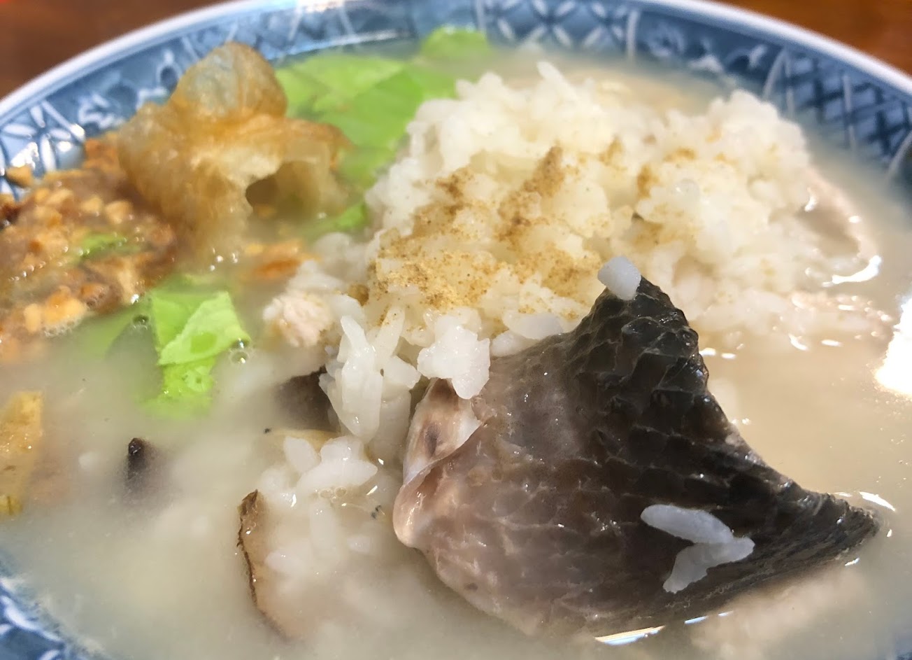 鹹粥的湯偏少所以顯得較濃稠。魚頭稍微鹹了一點,但還可以接受。