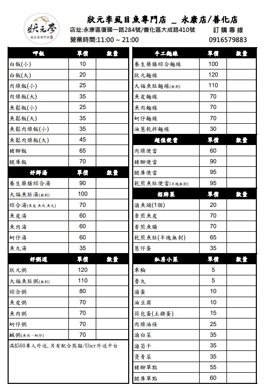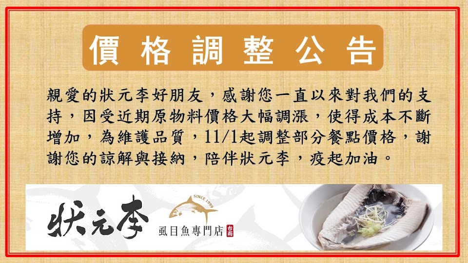 2024最新在地推薦餐廳的菜單_狀元李虱目魚專門店-台南復國店的菜單、圖片