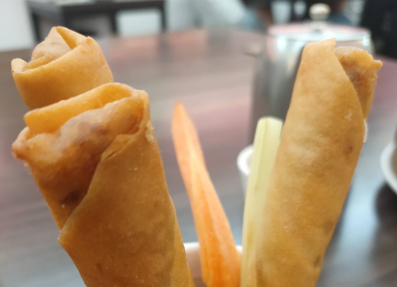 沙拉龍鬚卷,外層包裹米粉下去炸,口感酥脆不會有油耗味,一份是三個75$,價錢比其他吃過的港式飲茶便宜很多