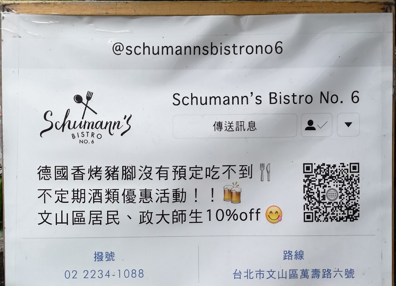Schumann’s Bistro No. 6 舒曼六號餐館 政大店的最新評論