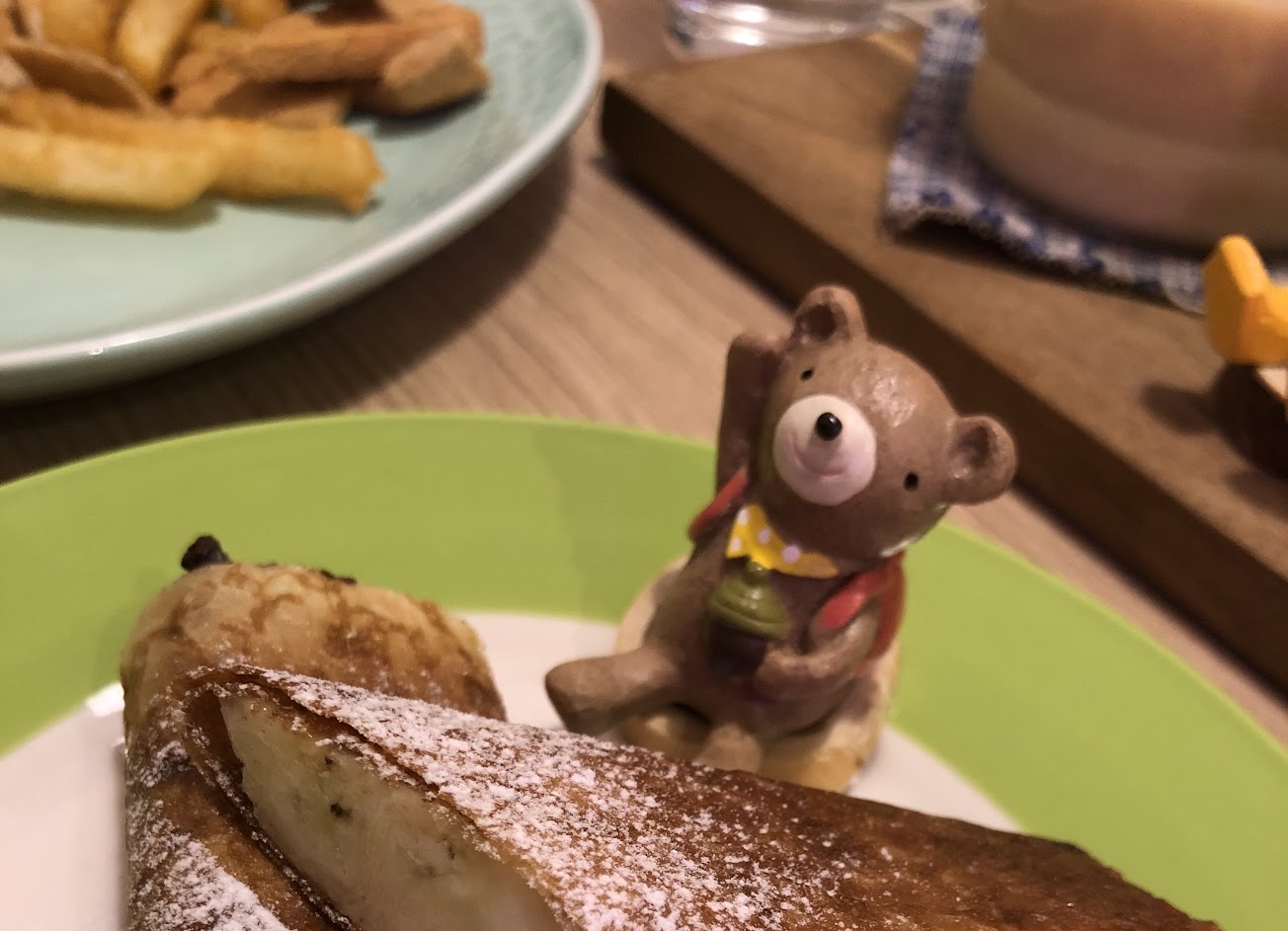 香蕉煎餅令人驚艷,脆脆的外皮包了巧克力及香蕉?