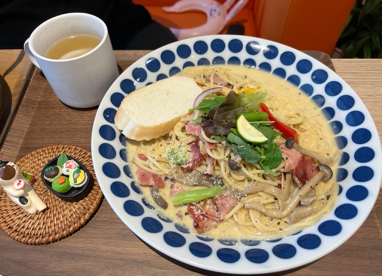 餐點好吃,每道都有精緻的小玩偶,讓人心情愉悅。用餐環境讓人放鬆沒有壓力,推薦。
