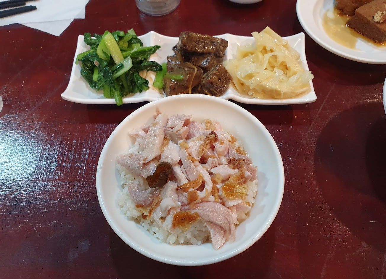 雞肉飯不錯,滷肉飯的滷肉算切大塊滷的不太透怕較硬肥肉的人不適合。