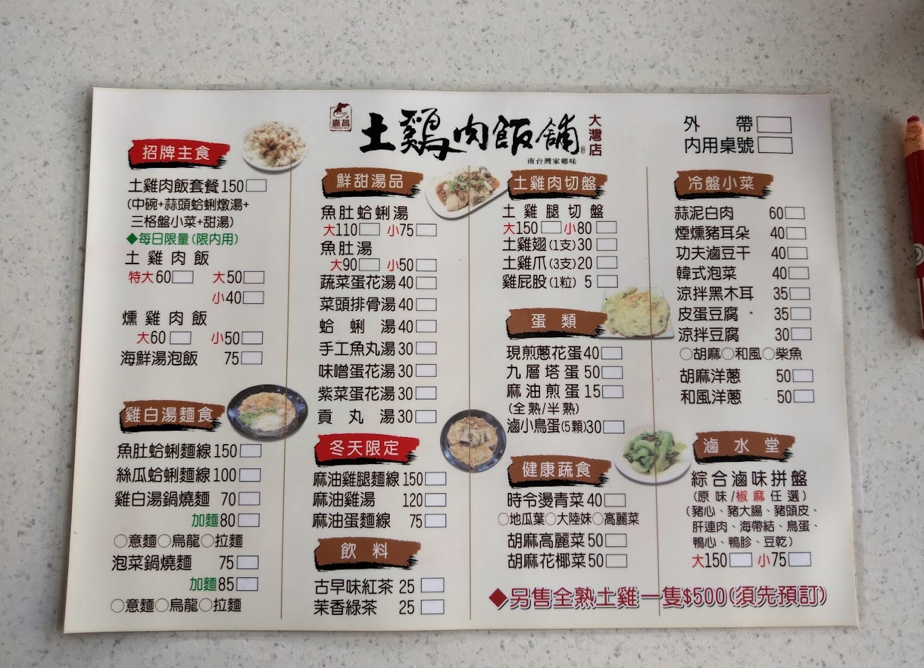 經過多次,看這店面就很想來試試,本身很愛吃火雞肉飯,特地試試有啥差,裡面有土雞肉飯跟燻雞肉飯,這次點了,土雞特大$60外帶,跟滷味拼盤(大$150),和風洋蔥($50),蔥花蛋($40),菜頭排骨湯($40)。