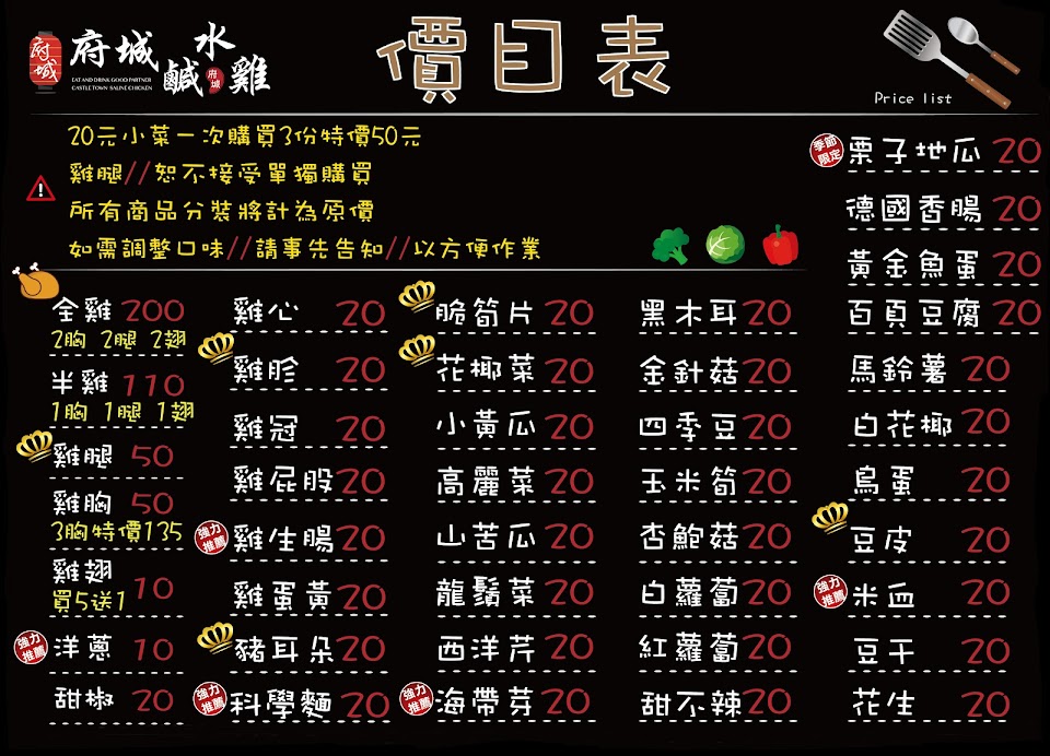 店攤由老闆自己設計的 鹹水雞,小菜, 新鮮,便宜,好吃