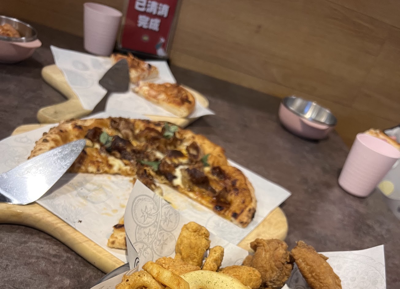 第一次嚐鮮,結果披薩的餅皮很乾、炸雞很鹹!