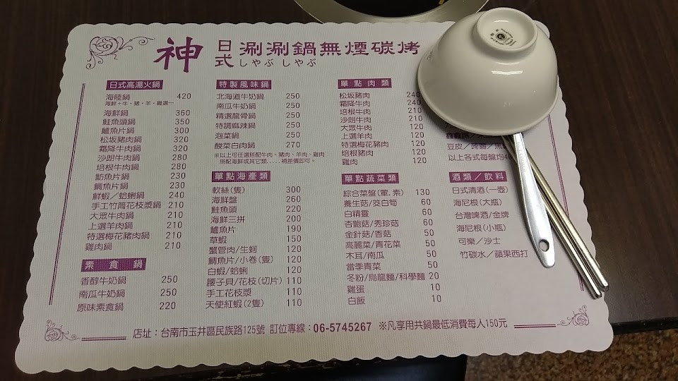 2024最新在地推薦餐廳的菜單_神采日式涮涮鍋的菜單、圖片
