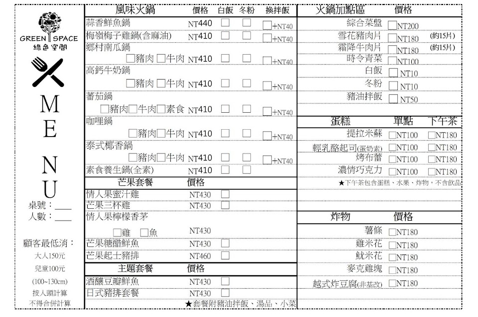 2024最新在地推薦餐廳的菜單_綠色空間的菜單、圖片