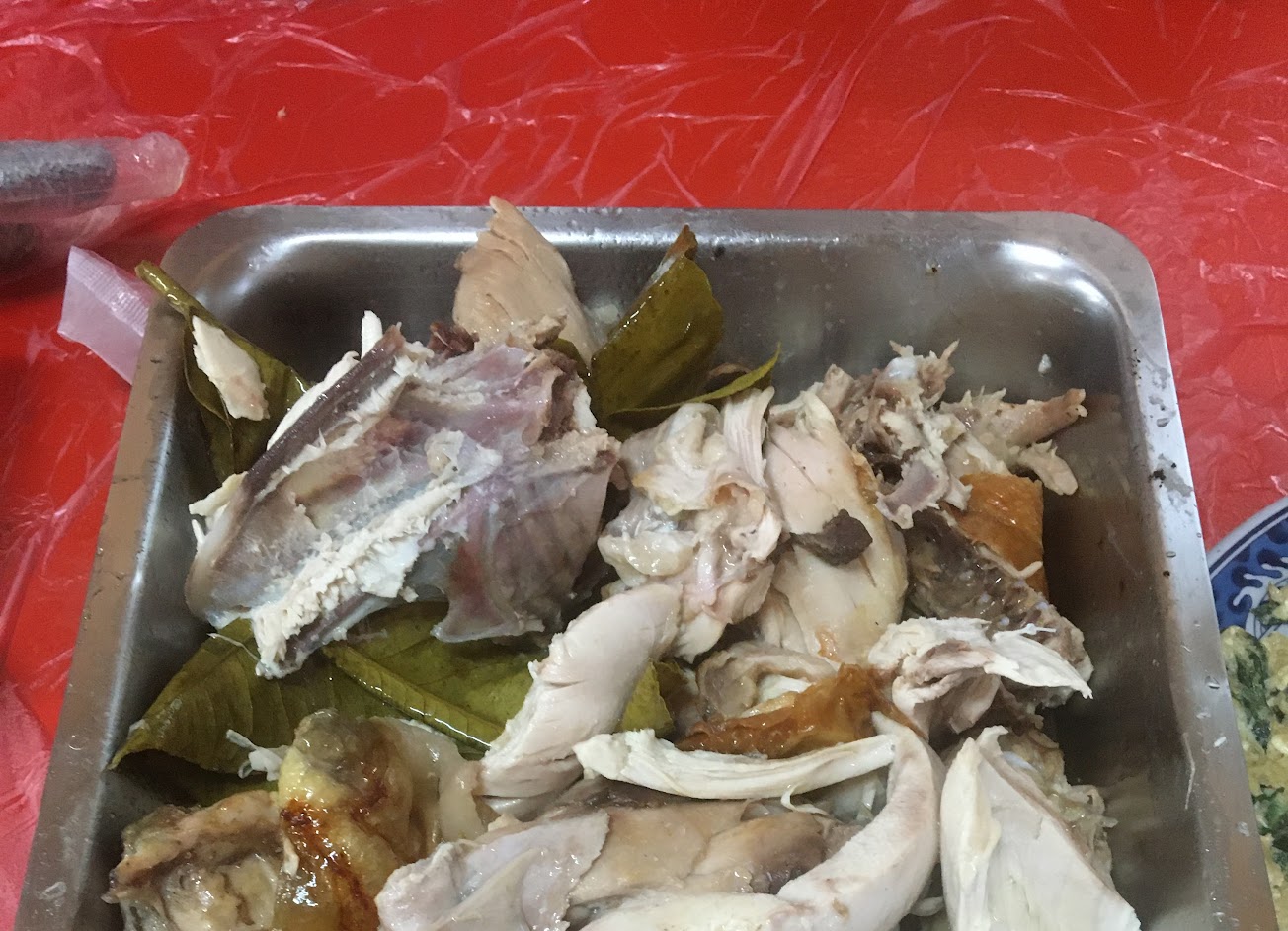 星期日人潮多,下午13:30爆滿已不收客了,店口只賣雞加雞油筍湯,共600元,到玉井運動公園拆解分給1+3個家人享用,全部吃光光…