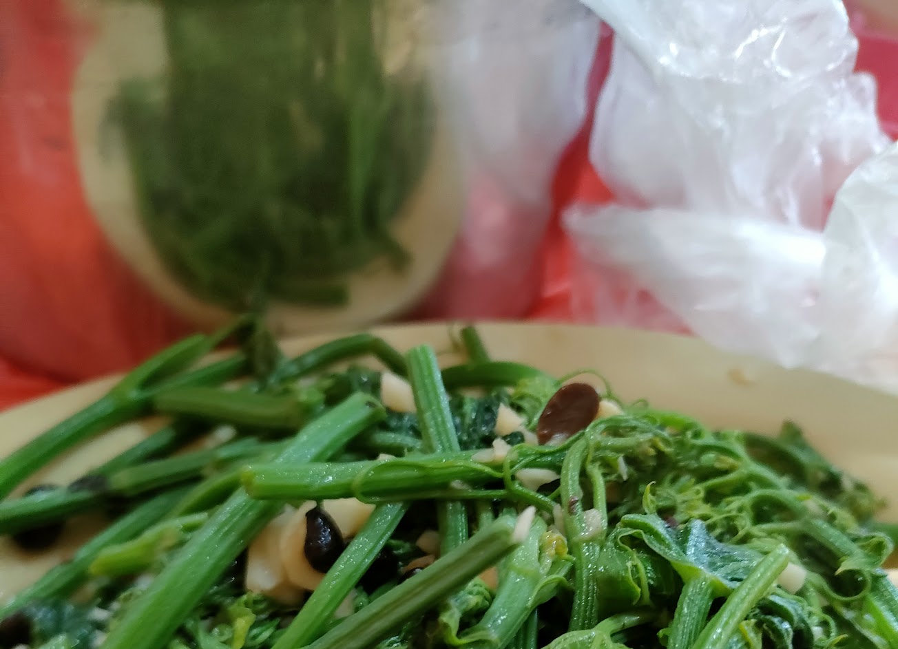 大推地瓜葉,應該是目前吃過的第一名地瓜葉!!!加入檸檬雞的雞油,哇!入口的檸香,雞油的醇厚,地瓜葉滑溜的入喉嚨,爽~