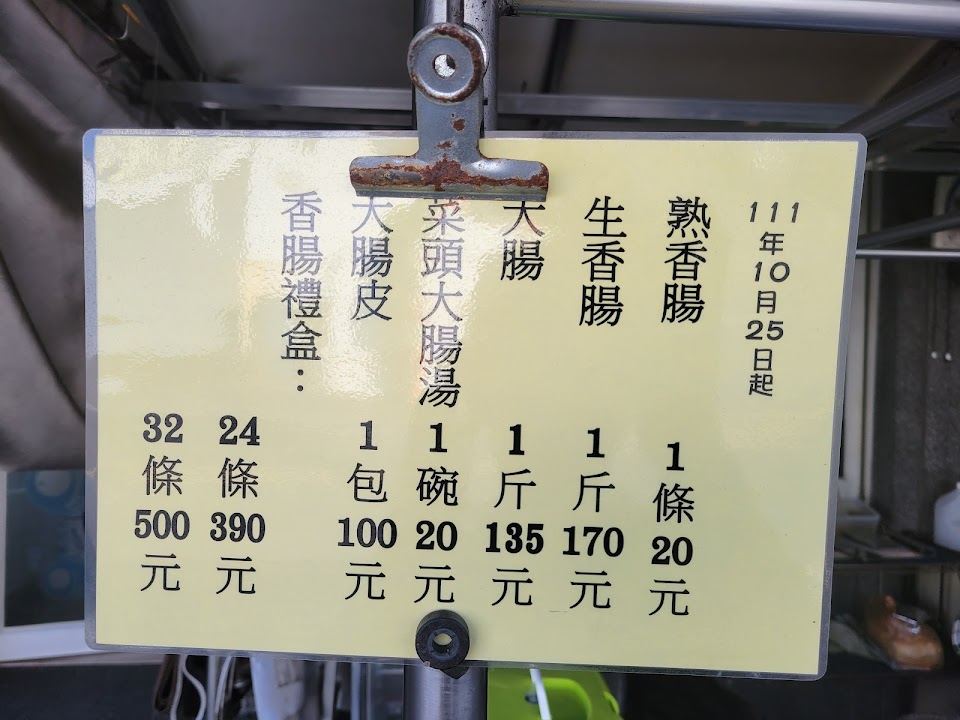 香腸大腸好吃,但營業時間有誤,星期六有時候沒有營業沒有公告清楚,建議打電話問一下以免白跑一趟