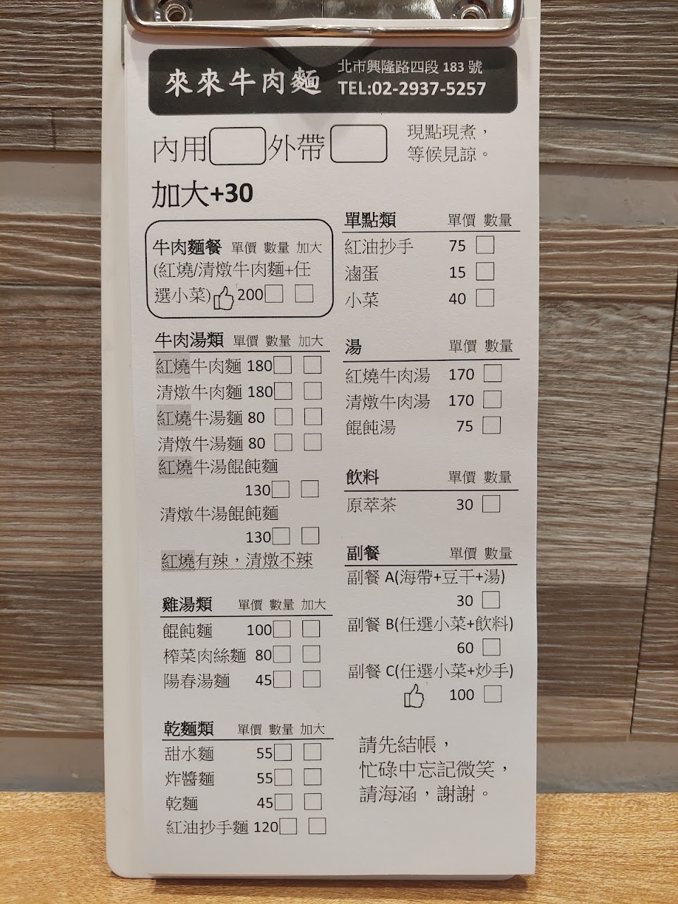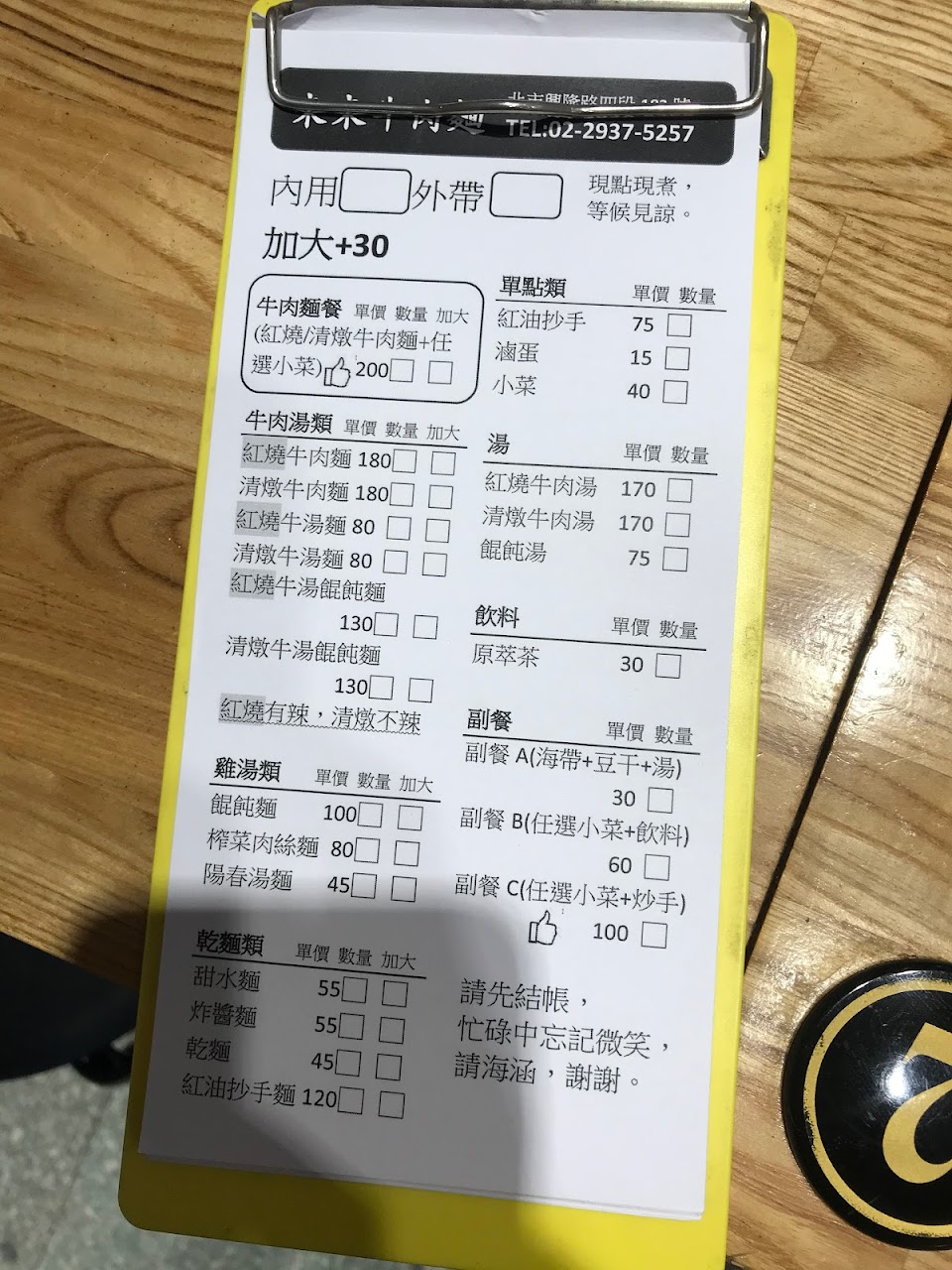 牛肉麵一碗180,配小菜的話200