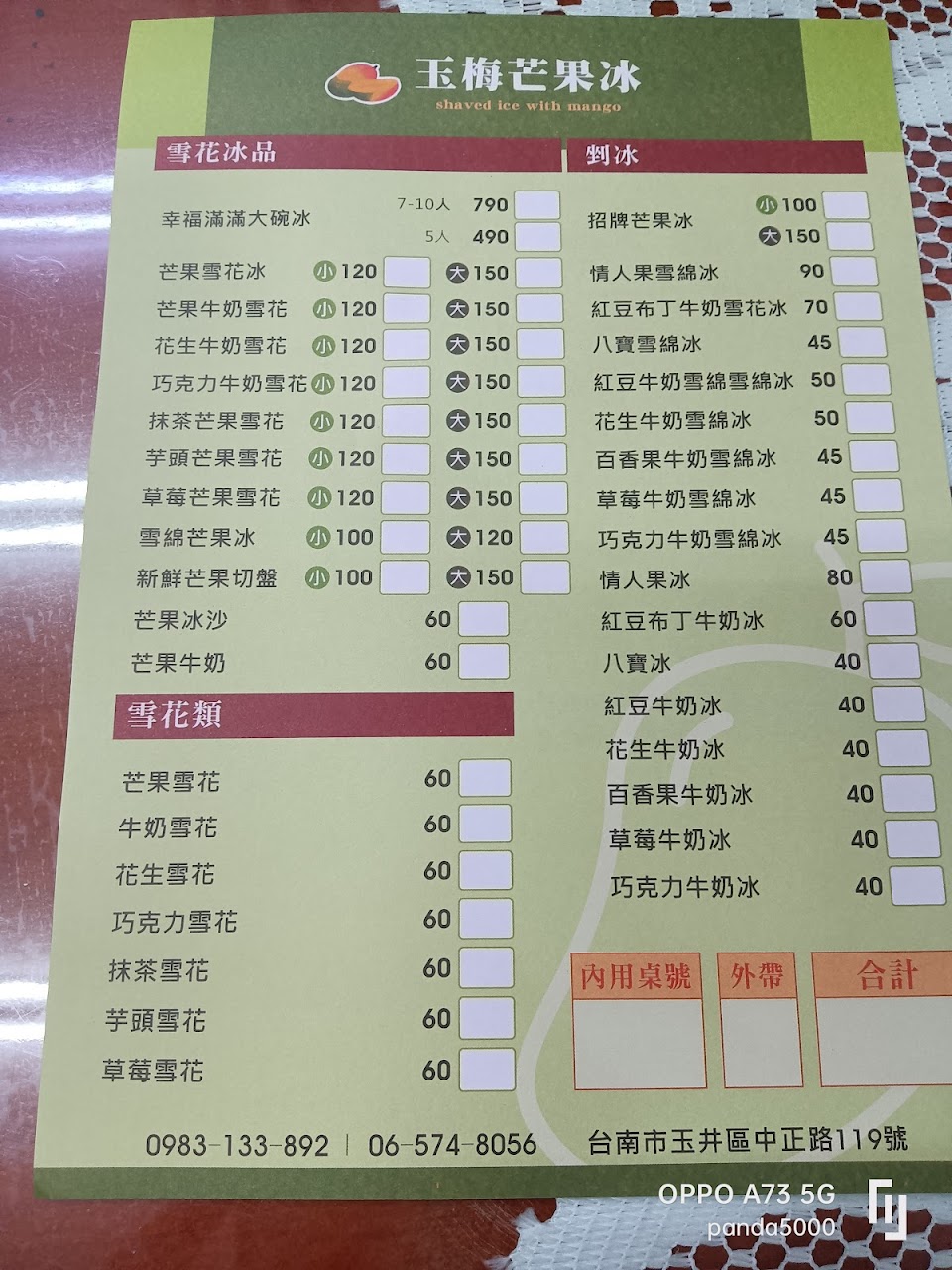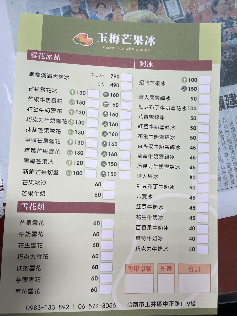 2024最新在地推薦餐廳的菜單_玉梅芒果冰的菜單、圖片
