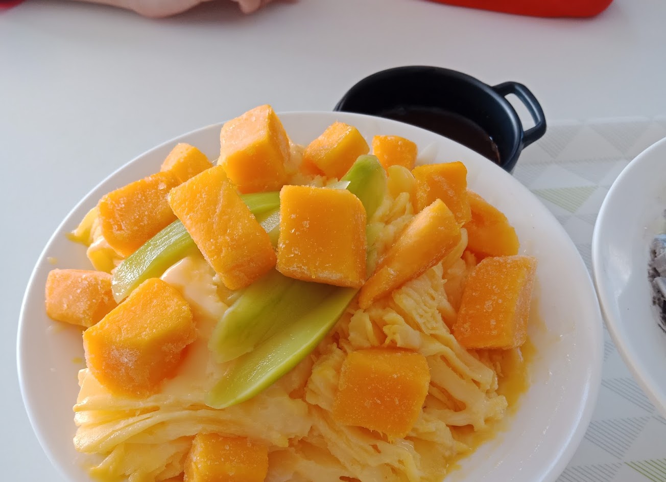 老闆親切解說目前非旺季沒有新鮮芒果,是冷凍的。吃完很棒另一種口味,雪花冰用芒果冷凍去做的。