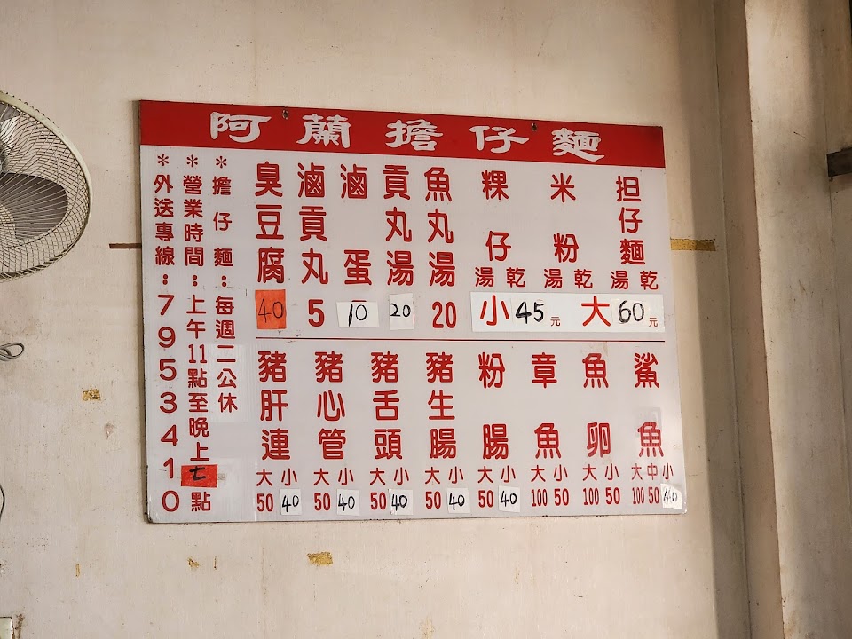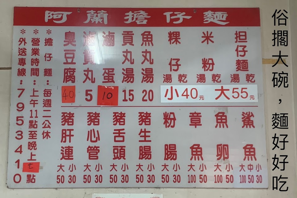 2024最新在地推薦餐廳的菜單_阿蘭乾麵、臭豆腐的菜單、圖片