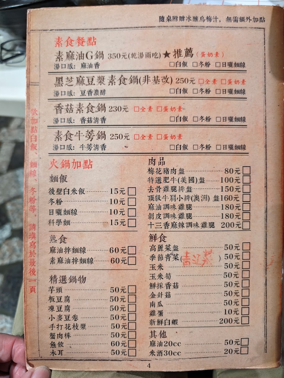 對素食者而言,素食火鍋有四種選擇不算少,是友善素食的店家喔,停車方便。