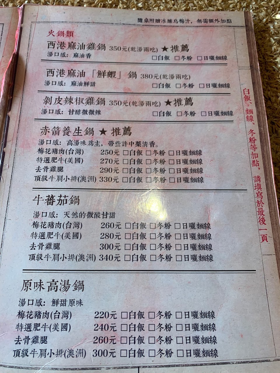 日曬麵線 冬粉 西港麻油鮮蝦鍋 烏梅汁 西港麻油雞鍋