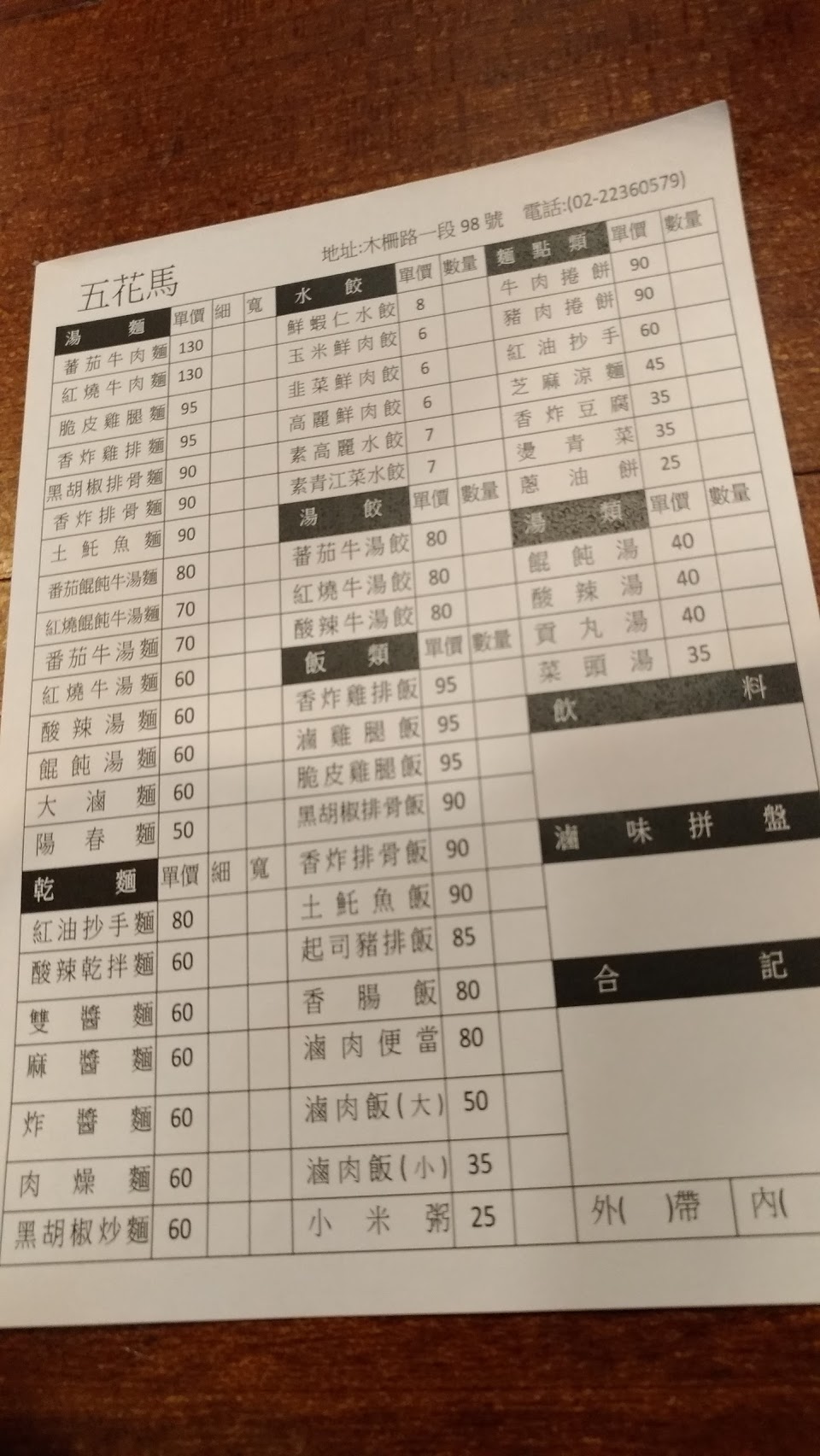 2024最新在地推薦餐廳的菜單_五花馬手工麵坊的菜單、圖片