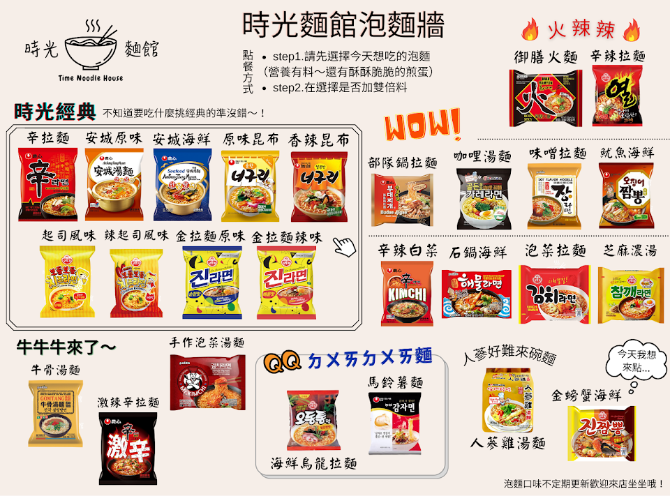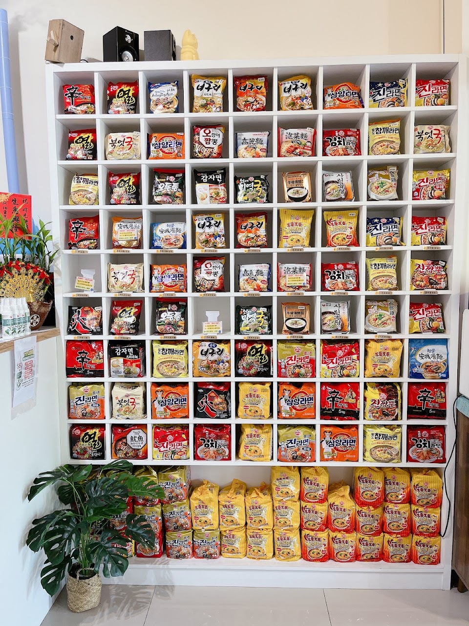點韓式泡麵選擇多樣,湯麵牆很吸金