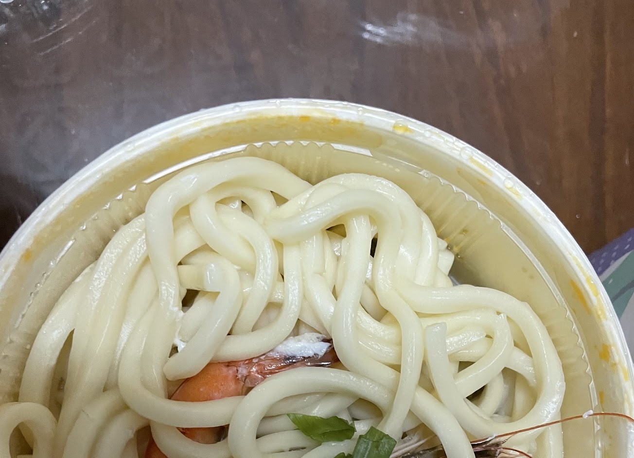 配料部分的話,不算是很豐富的,1隻蝦、2顆丸子、1個小黑輪、2片迷你肉、一顆蛋、零碎的菜梗。CP值不算高。