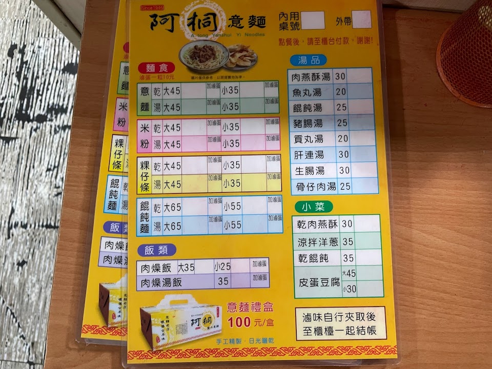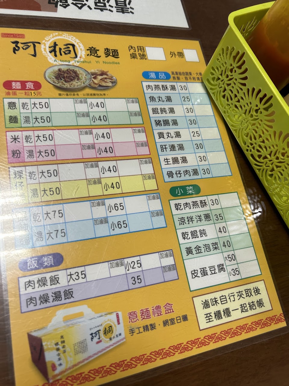 個人偏好阿桐麵條口感較硬與脆,其他家則較軟糊 尤其乾麵更凸顯特色 環境也還ok,是cp值很高的選擇 態度嘛…就老名店啦,不要要求太多