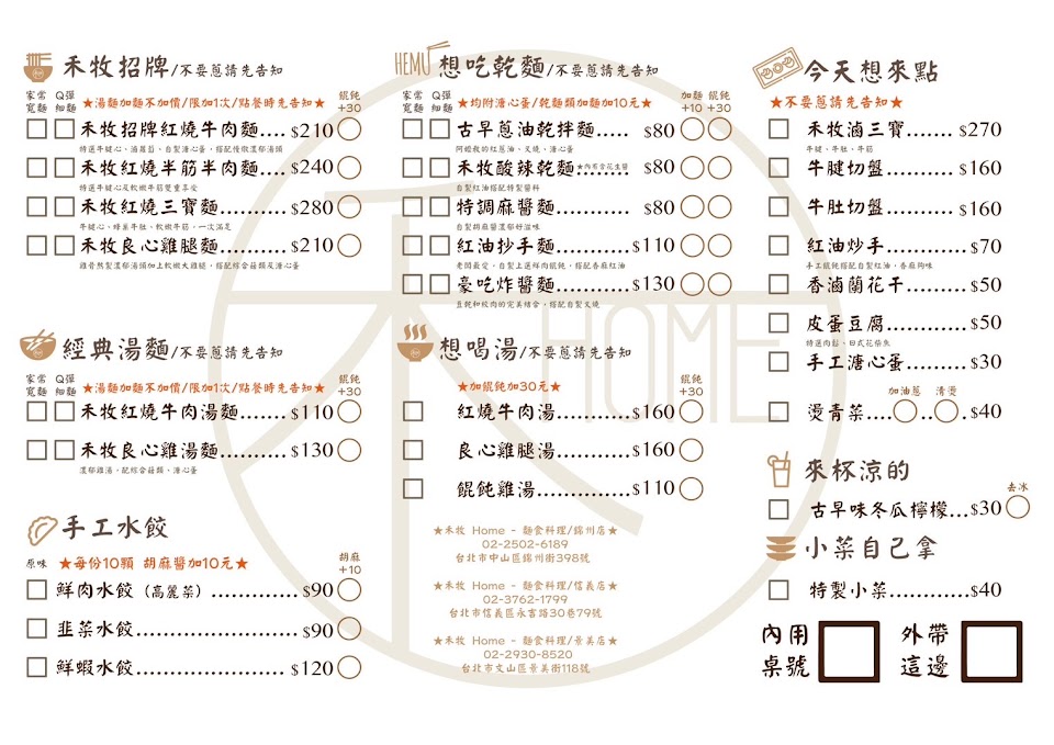 2024最新在地推薦餐廳的菜單_禾牧 Home – 麵食料理/景美店的菜單、圖片