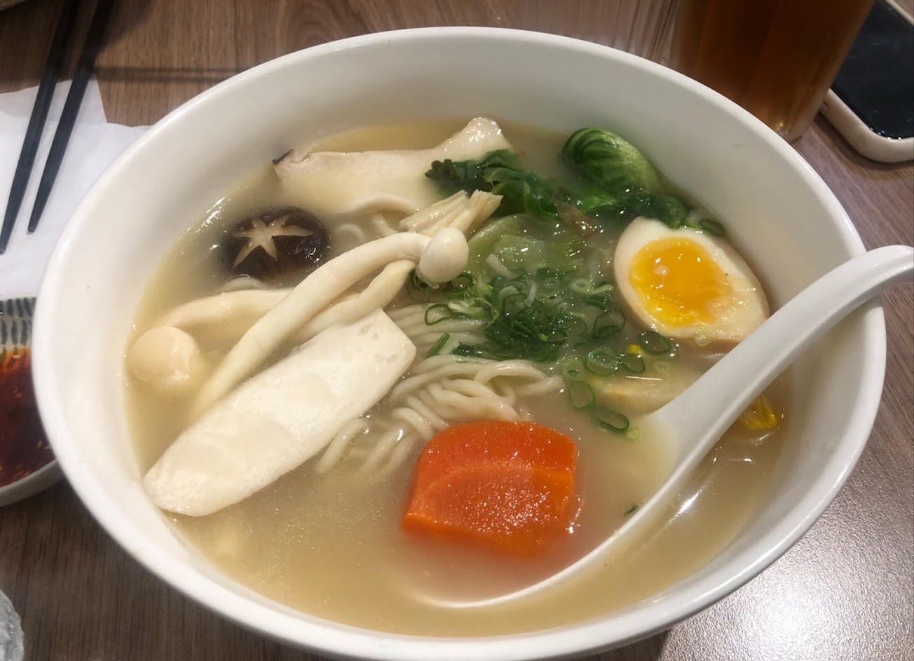 (湯裡包含6顆餛飩、杏包菇、玉米、香菇、紅蘿蔔、青菜)