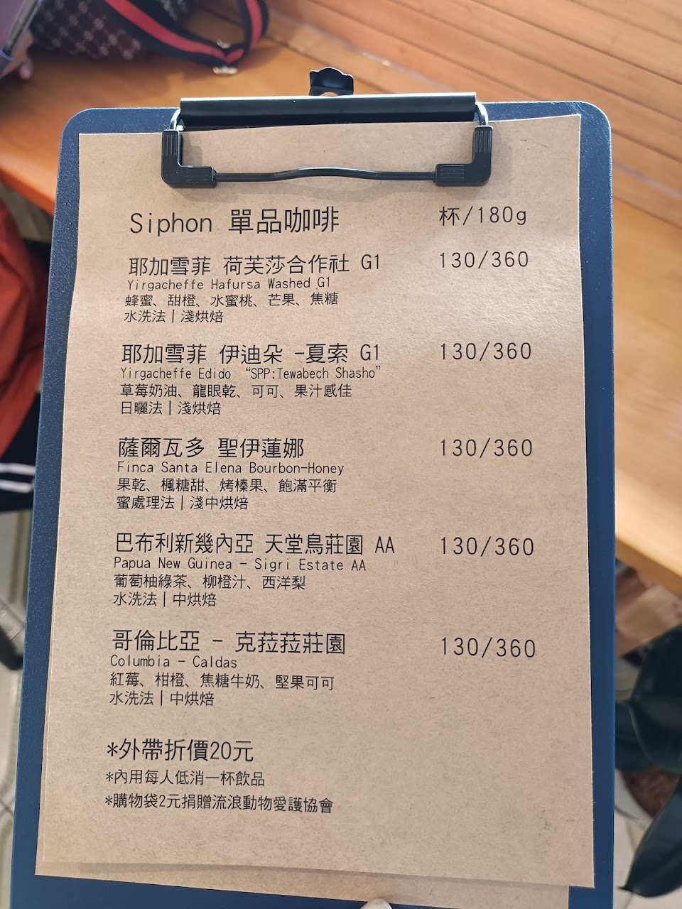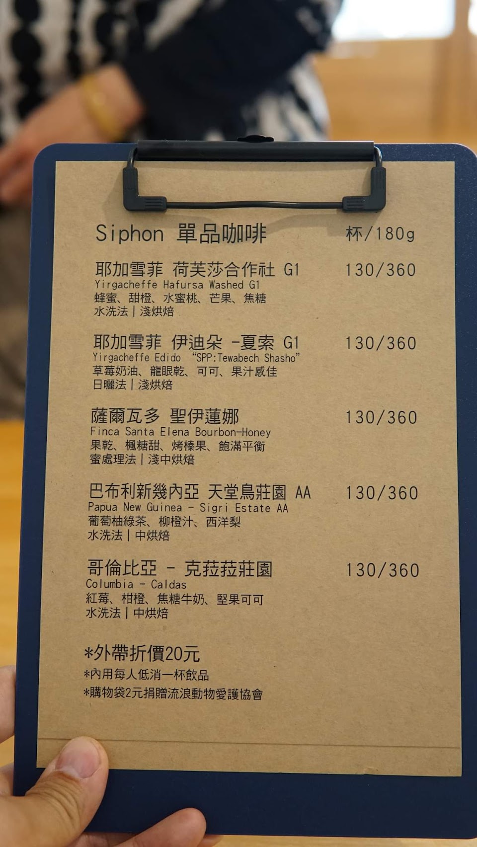 單品是用比較少見的虹吸壺煮ㄉ,喝起來口感溫潤喝的到咖啡油脂和尾韻香氣!