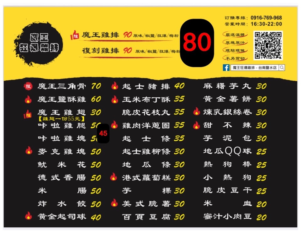 2024最新在地推薦餐廳的菜單_魔王狂爆雞排-台南鹽水店的菜單、圖片