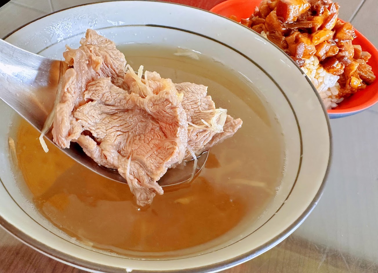 一碗湯附一碗自取的肉燥飯..肉燥肥而不膩