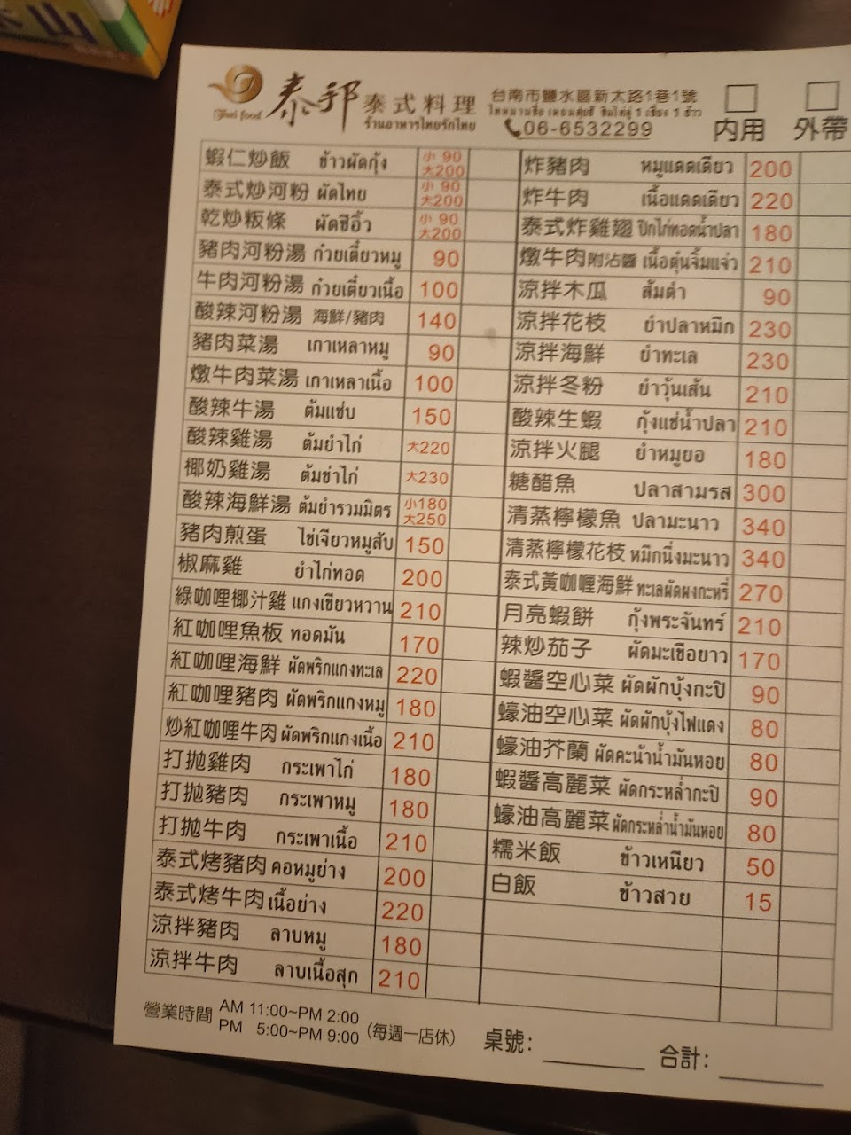 Great Thai place in the Xinying area. Not too expensive and it tastes pretty good!