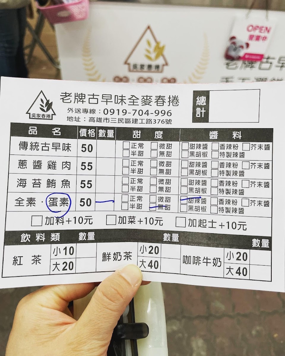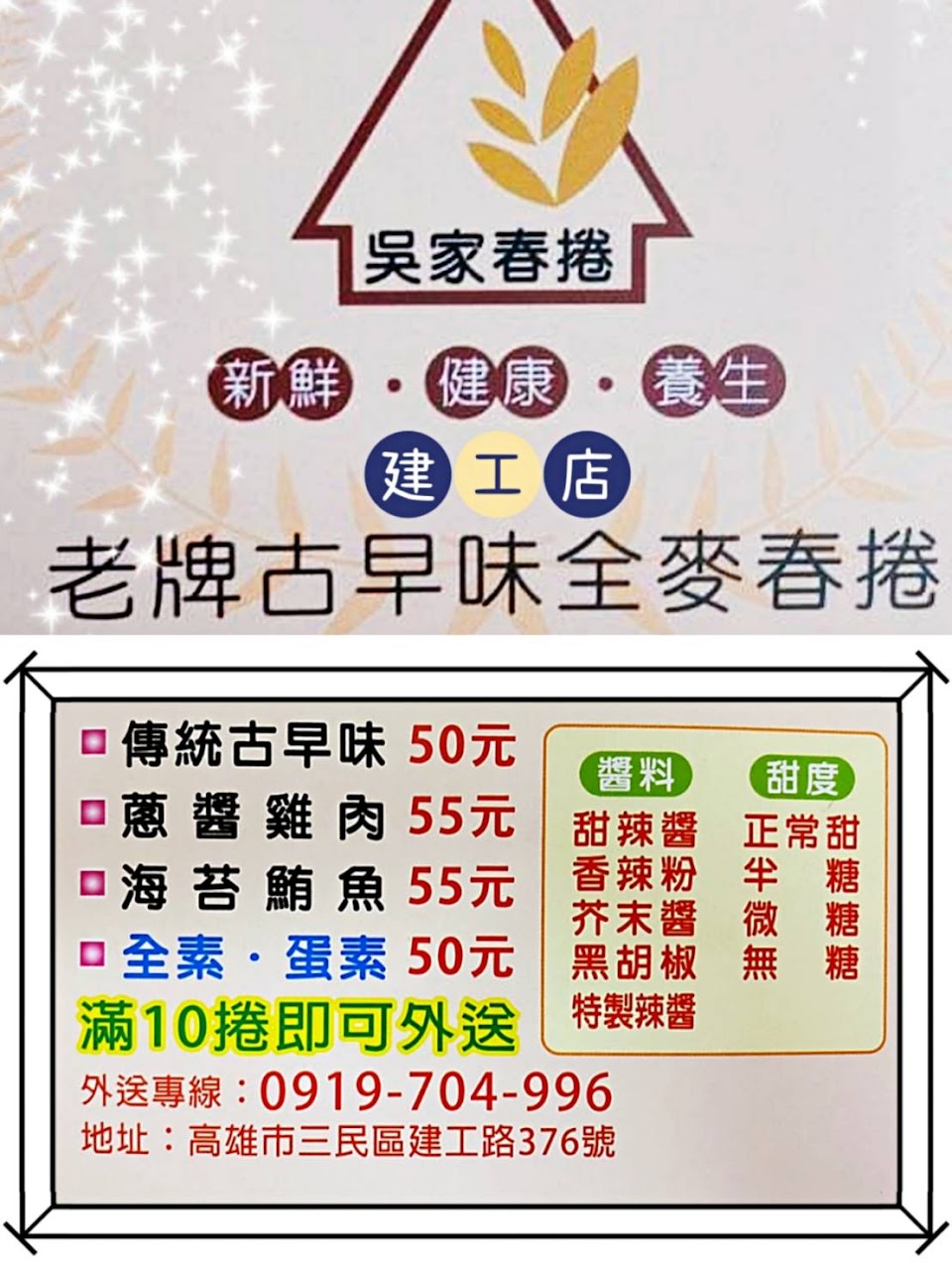 2024最新在地推薦餐廳的菜單_吳家全麥春捲[建工店]的菜單、圖片
