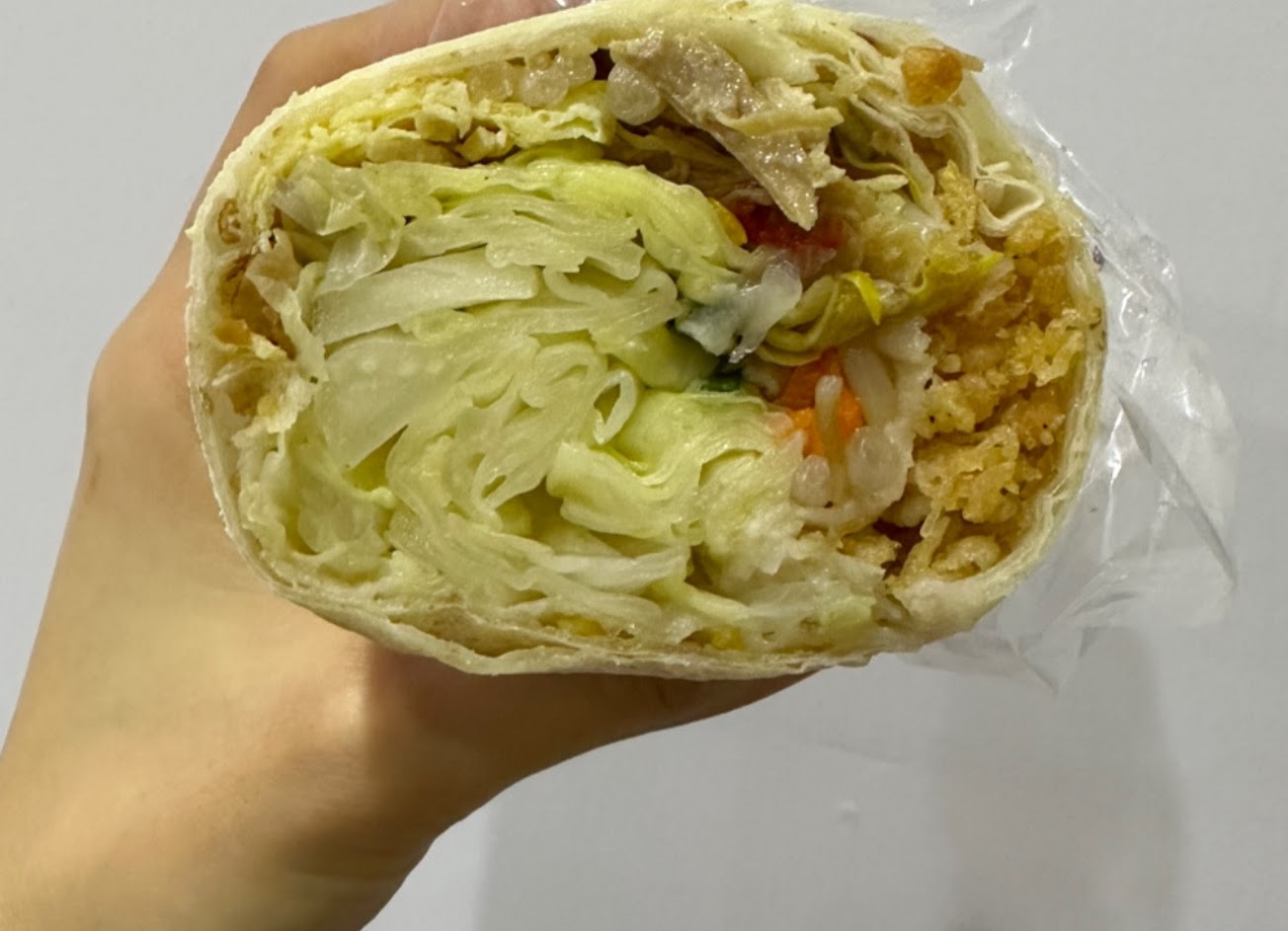 剛看到價格會覺得小貴,實際拿到覺得超划算!非常大捲!不會像很多春捲店有水煮青菜的菜腥味,高麗菜口感爽脆量多,特製辣醬很香,搭麵條微辣就蠻辣的了,蛋酥用很貼心的包法,不會跟其它食材混一起變濕軟,一直吃到最後整捲都保持清爽脆口、不會散掉,天氣熱吃春捲很清爽。