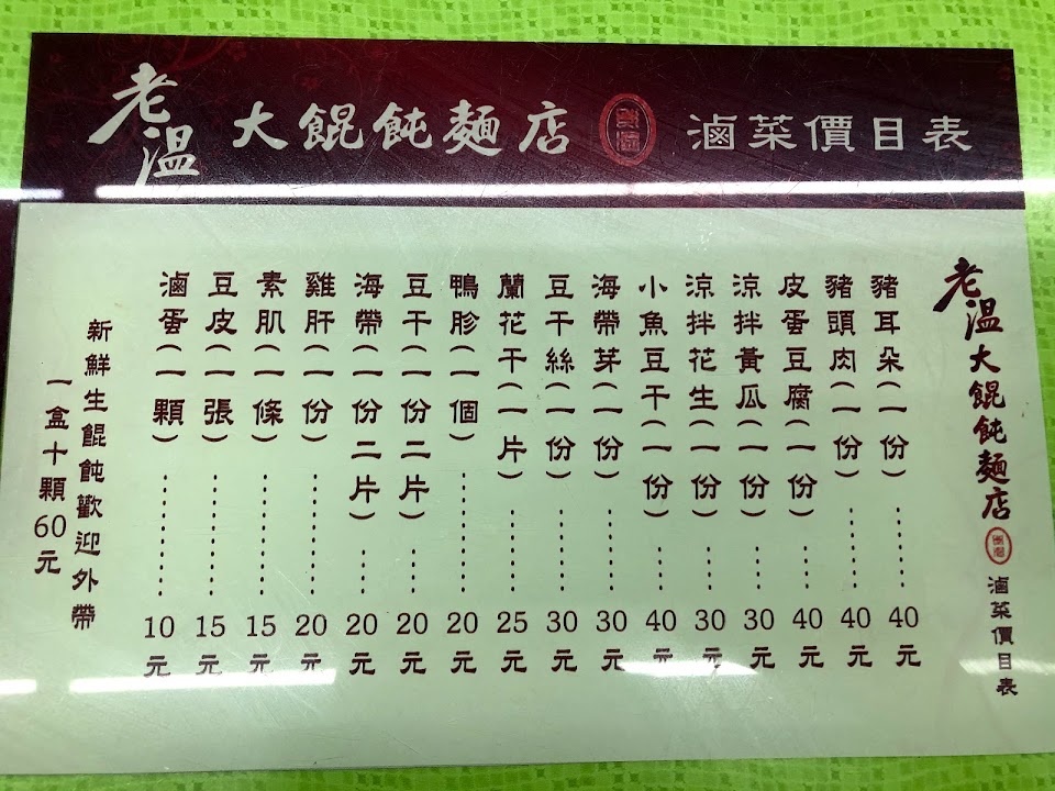 2024最新在地推薦餐廳的菜單_老溫大餛飩麵店的菜單、圖片