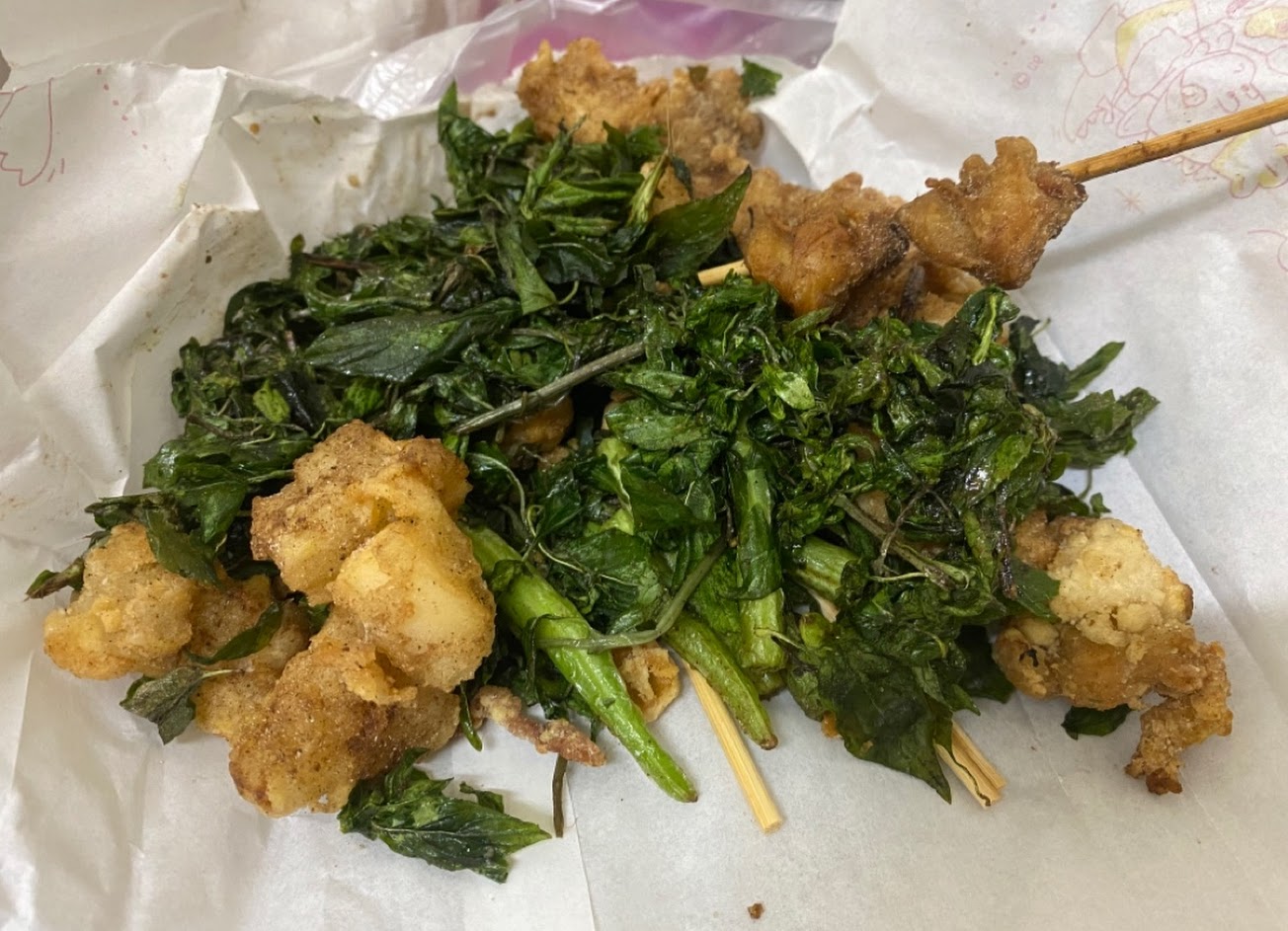 老闆九層塔給太狂了吧,我懷疑我點的是九層塔附贈鹹酥雞