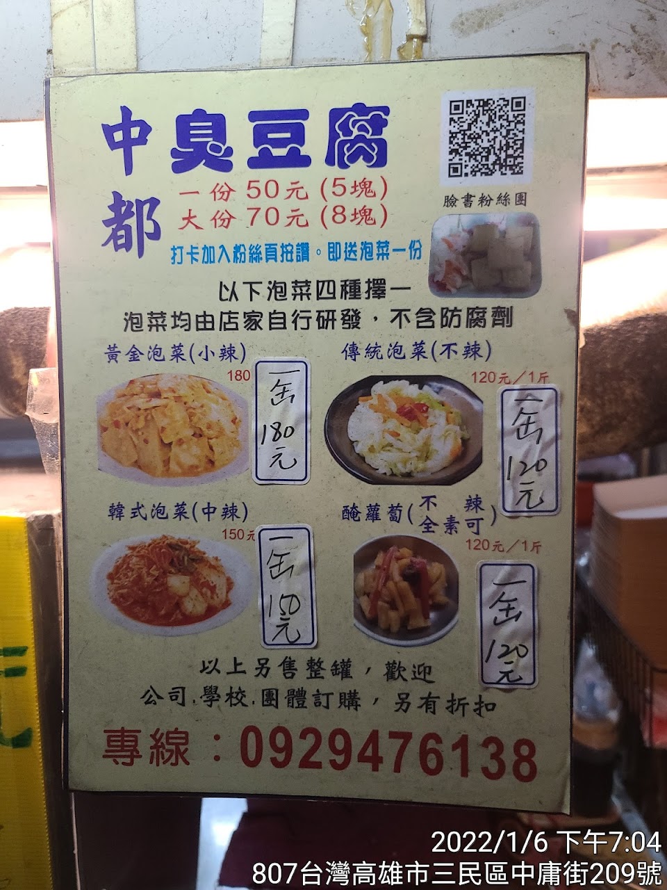 有別於一般的臭豆腐,但也沒有特別的好吃,不是我喜歡的口感,價格則在中上,泡菜也有別於傳統單樣的選擇,有四個選項可以任意選擇。我是為了他們的黃金泡菜而去,但老闆說:黃金泡菜剛醃漬,還無法食用,只能說無緣一睹廬山真面目,可惜了?。 …