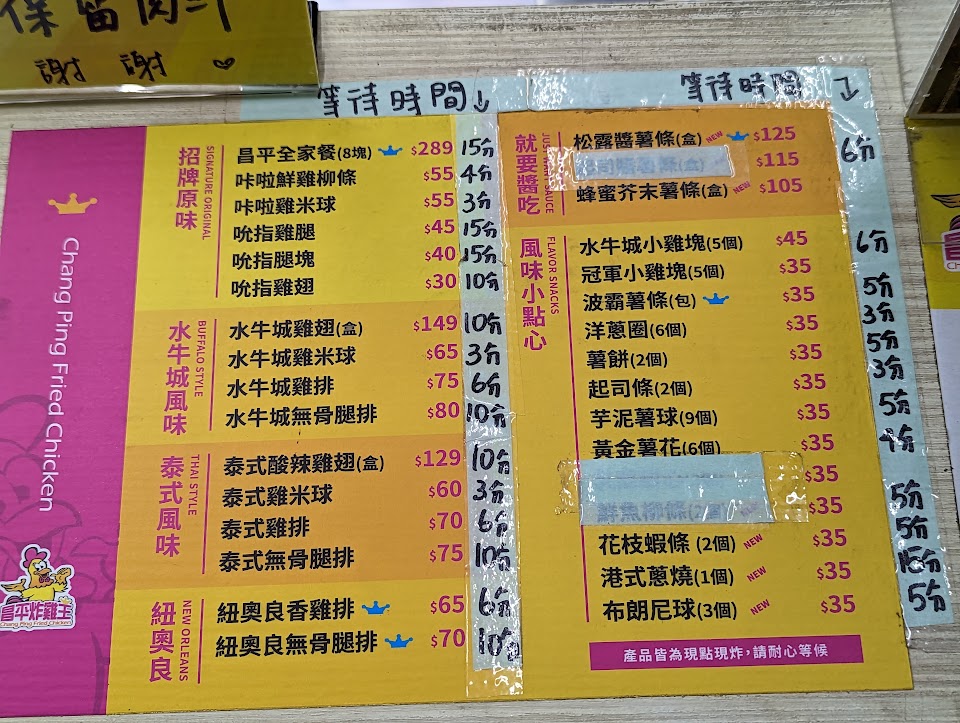 2024最新在地推薦餐廳的菜單_昌平炸雞王 黃興店(公休日不定請點最新資訊)的菜單、圖片