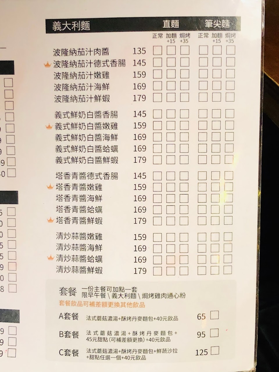 義大利麵一百多到兩百多的價位還蠻合理也很好吃。