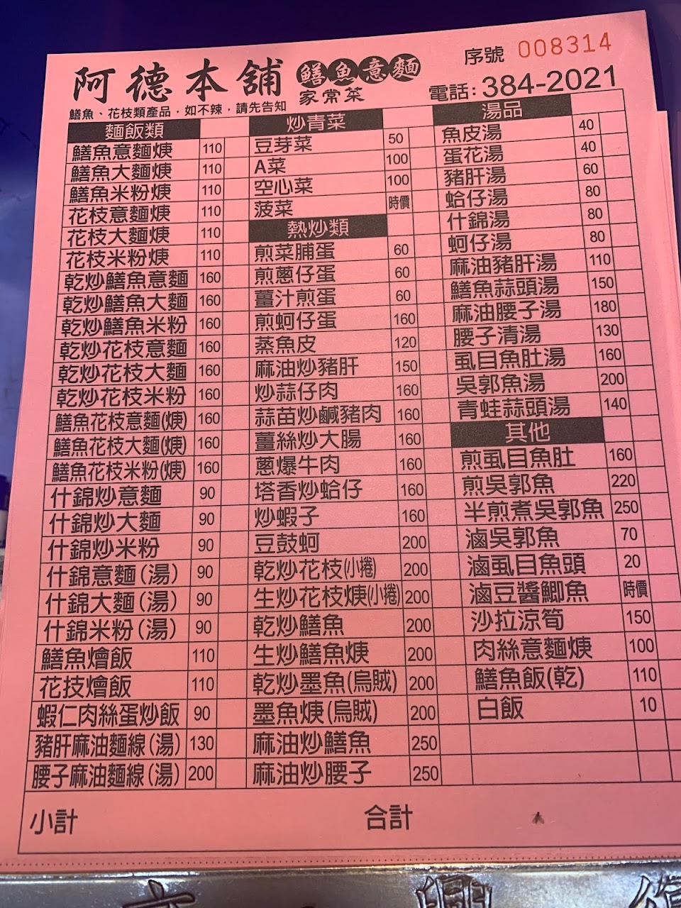2024最新在地推薦餐廳的菜單_阿德鱔魚意麵的菜單、圖片