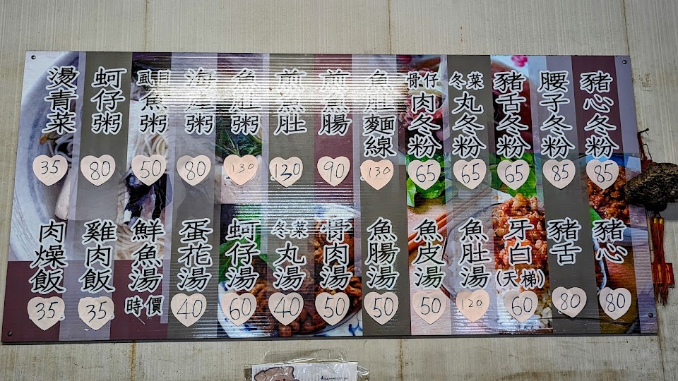 乾煎魚腸大推!建議告知店家不加胡椒粉; 蚵仔蛋+骨仔肉必點、白飯最適宜。 服務 內用 餐點類型 午餐 平均每人消費金額 $1-200 餐點:5 服務:5 氣氛:3 建議的餐點 肉燥 飯 乾煎魚腸