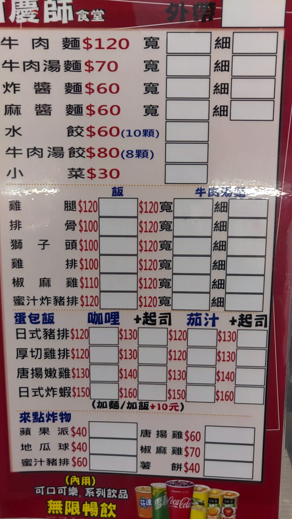 我是今年世新大一生,最近很常來光臨本店,每項餐點都很有誠意,內用可以無限暢飲可樂、汽水、果汁,以及每日湯品,老闆很親切