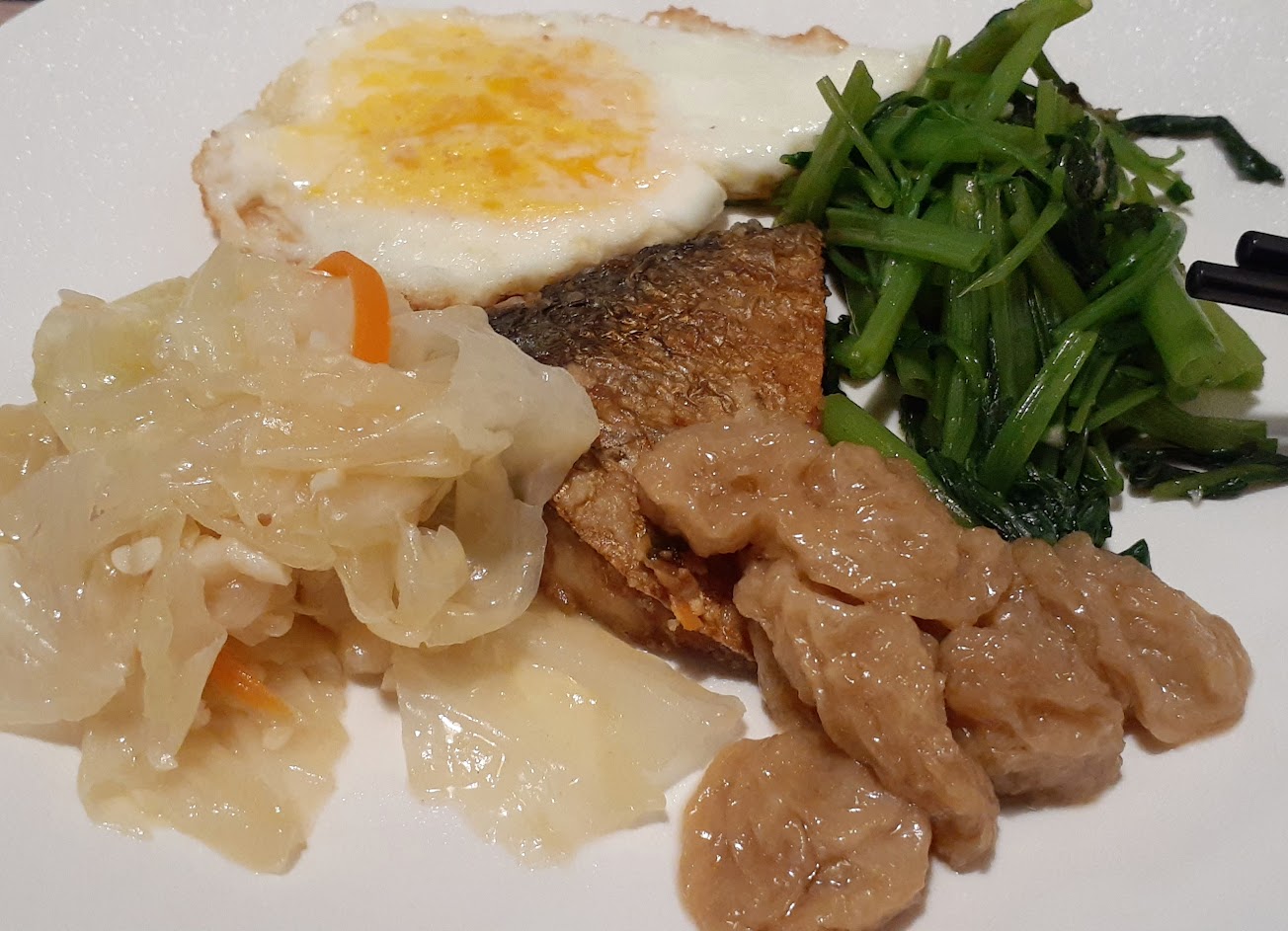 蔥蛋.玉米蛋清淡好吃.豆干肉絲微辣蠻對味.柳葉魚有時候炸過頭焦焦的,肉燥飯醬汁稍鹹了