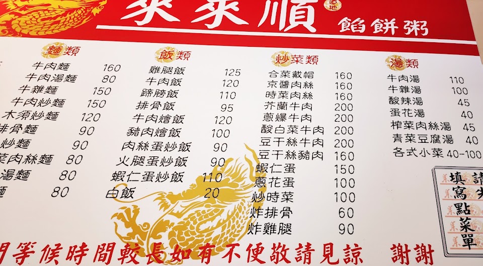2024最新在地推薦餐廳的菜單_來來順餡餅粥的菜單、圖片