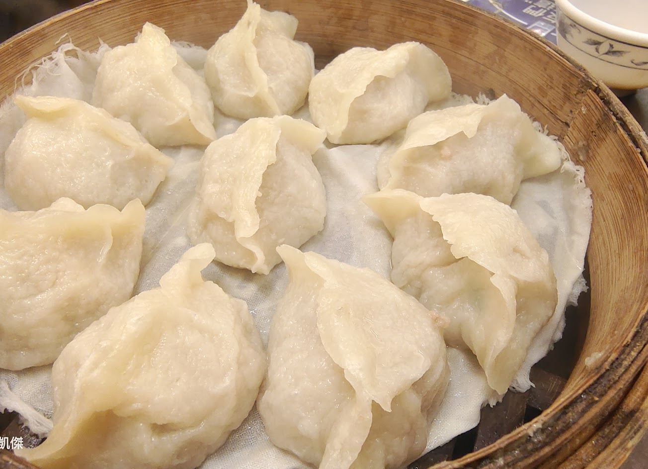 麵皮偏厚、有嚼勁,內餡鹹甜鹹甜(沒有很多湯汁 有點可惜),而且蒸餃頗大顆,正常女生食量應該會很有飽足感