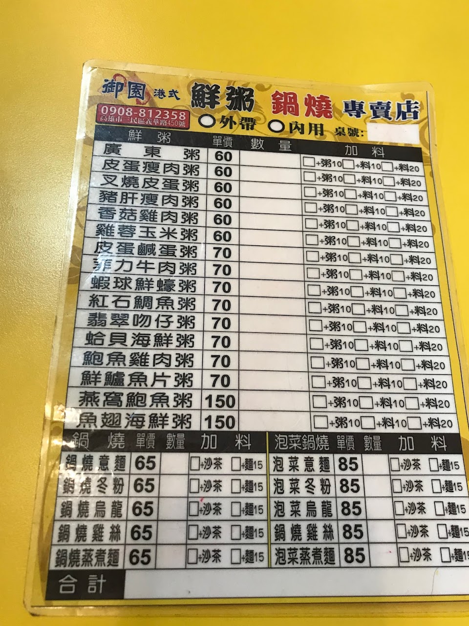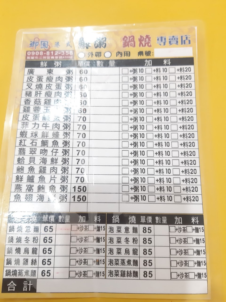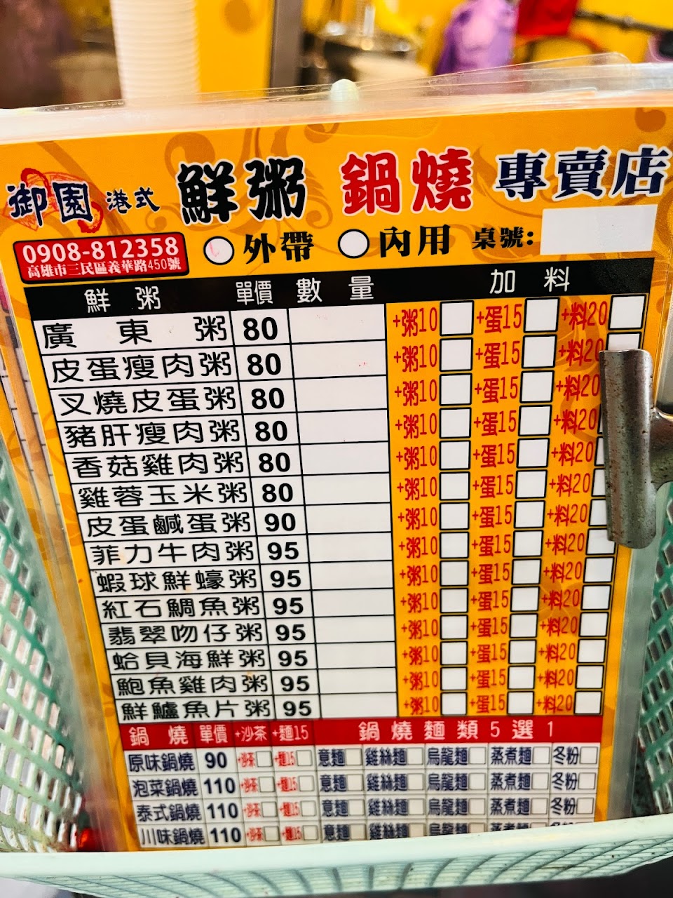 2024最新在地推薦餐廳的菜單_御園港式鮮粥的菜單、圖片