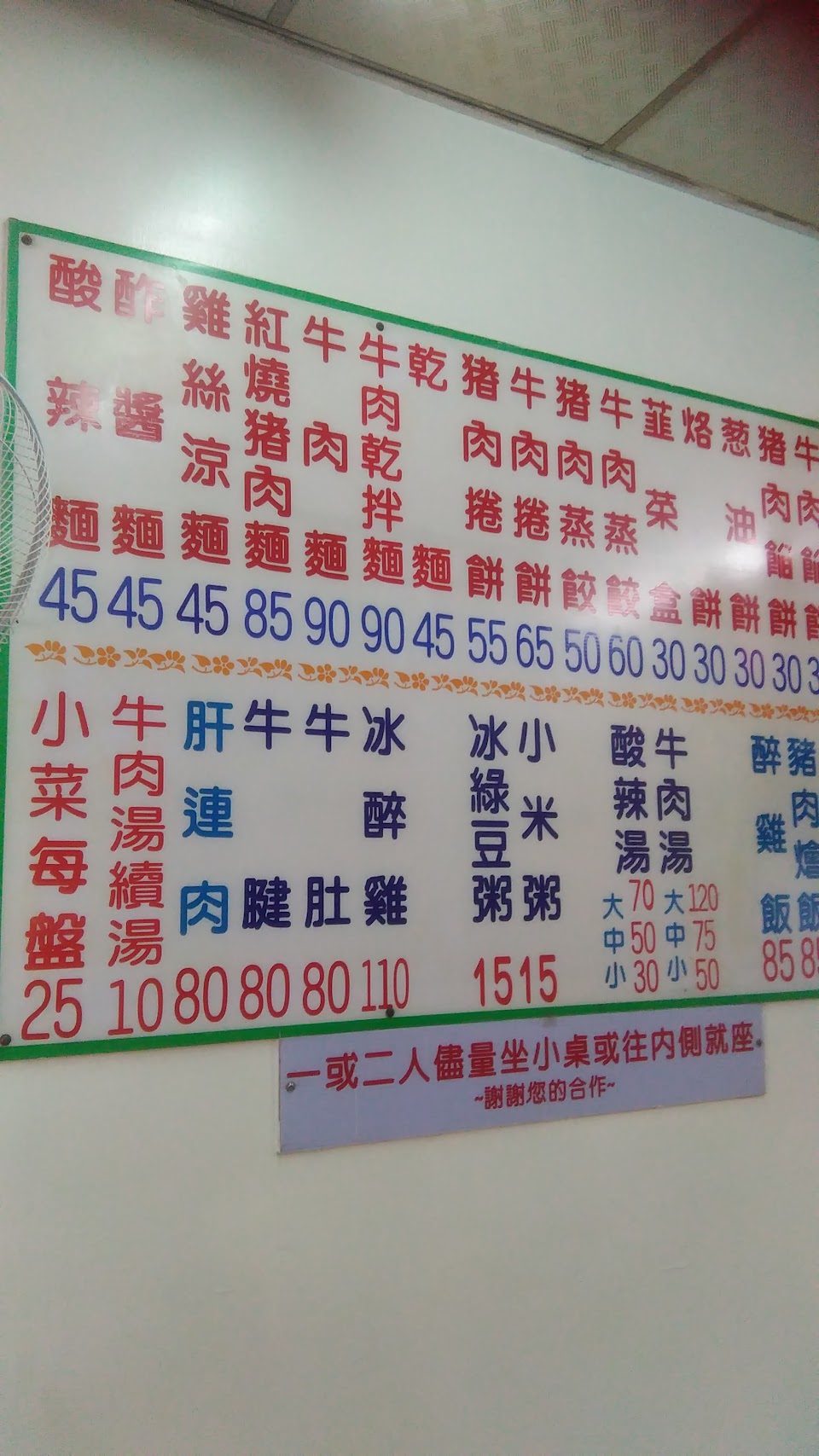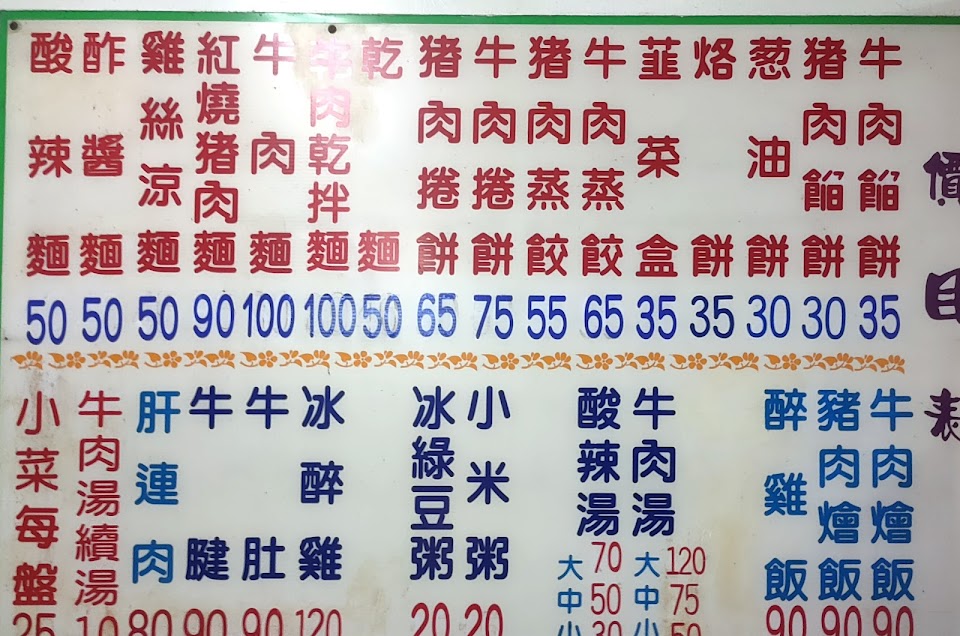 冷氣夠涼,豬肉餡餅趁熱吃好吃!牛肉麵中規中矩,肉只有四塊,可能因為吃過更好吃的。建議多試餅類,小菜看起來不錯,其他餐點不敢輕易嘗試,看到其他評價,怕踩雷。