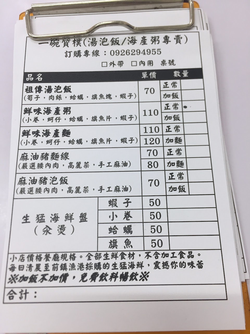 點了一碗鮮味海產泡飯加飯,用料算是豐盛,但湯頭吃起來到還好,加了海鮮卻不鮮甜,飯粒QQ的。但不算我喜歡的味道。