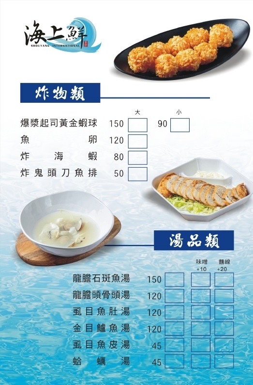 2024最新在地推薦餐廳的菜單_海上鮮-海鮮鍋燒、粥品、湯品、冷凍水產的菜單、圖片