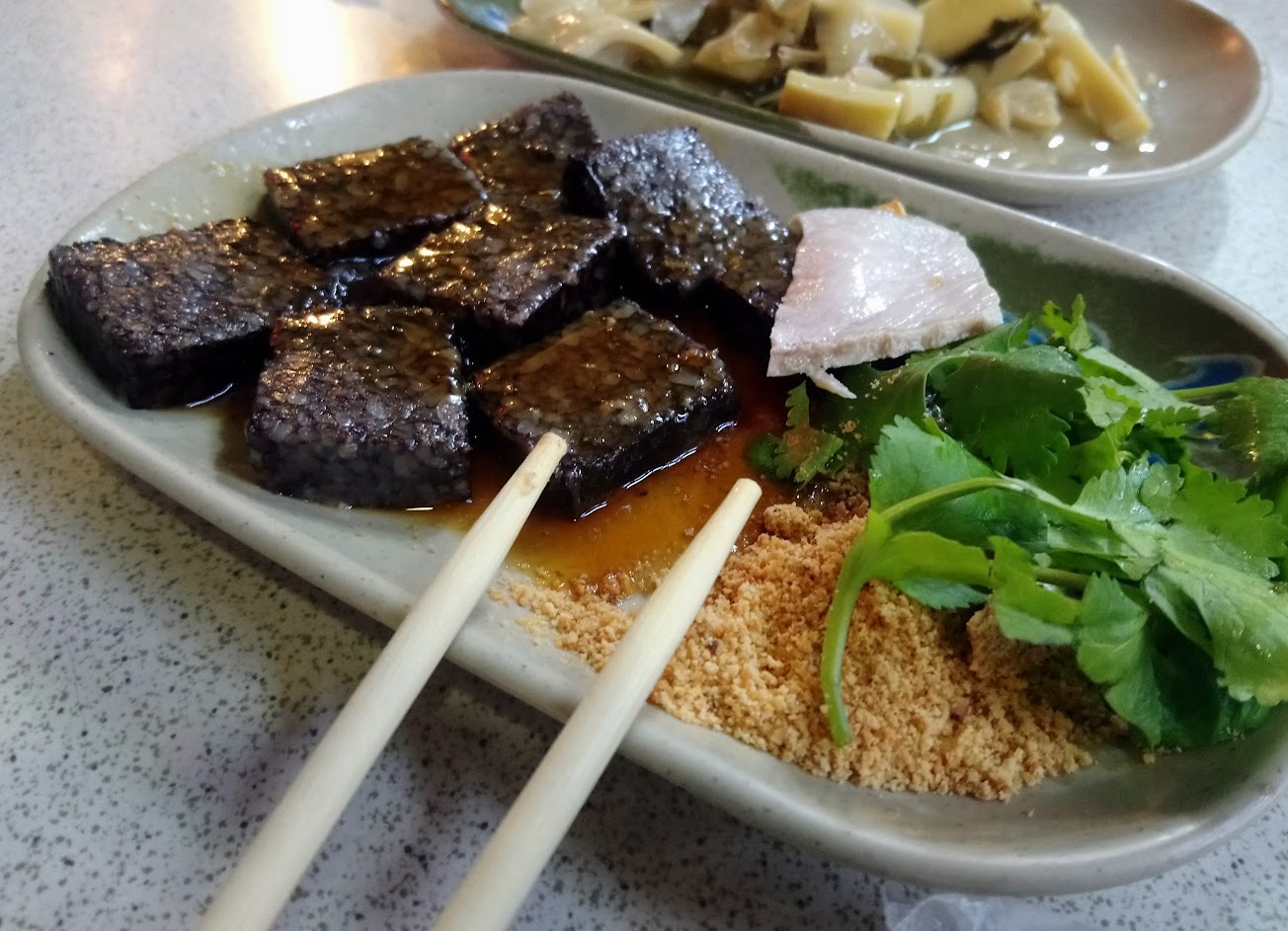 醬配花生粉組合 跟搭配 燙空心菜 鴨血 覺得罪惡感沒那摸重(卡路里)??好吃 建議搭車來景美