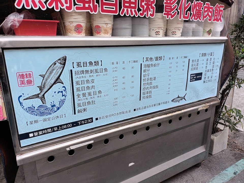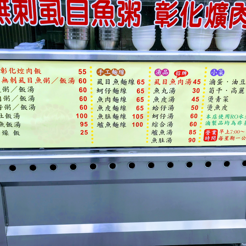 在市場裡面的平價美食!第一次來吃這個虱目魚粥,覺得湯非常鮮甜,料也很多喔,除了虱目魚之外還有魚肉跟蚵仔,讓整個湯頭變得非常鮮甜??道地的早餐,讓人一整天都心情很好?而且一碗才$60元,非常超值,老闆的服務態度也相當親切,下次還想吃看看滷肉飯跟控肉飯,看起來也是魯的很入味好吃,廚房的環境也很乾淨,老闆製作餐點也很用心,期待疫情結束過後可以到店裡享用熱騰騰的美食??非常推薦給大家!!吃過都會讚不絕口的!! …